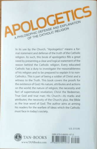 Proves the truth of the Faith from a philosophic point of view. Covers proofs for the existence of God; His nature, attributes and action on the world; the nature of religion; the necessity and fact of supernatural revelation; Christ the Redeemer, True God and True Man; His Church–its marks and attributes; the necessity of the Church; plus, the Bible as the true word of God.
