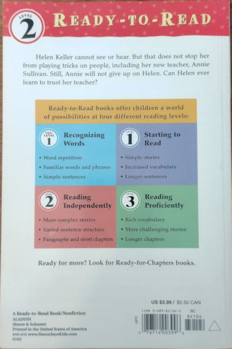 Helen Keller cannot see or hear. But that does not stop her from playing tricks on people, including her new teacher, Annie Sullivan. Still, Annie will not give up on Helen. Can Helen ever learn to trust her teacher? A special section in the back of the book includes a time line of Helen’s life.
