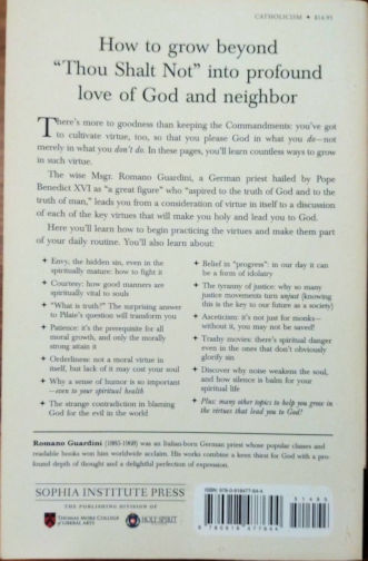 There’s more to goodness than keeping the Commandments: you’ve got to cultivate virtue, too, so that you please God in what you do not merely in what you don t do. In these pages, you’ll learn countless ways to grow in such virtue. The wise Msgr. Romano Guardini, a German priest hailed by Pope Benedict XVI as a great figure who aspired to the truth of God and to the truth of man, leads you from a consideration of virtue in itself to a discussion of each of the key virtues that will make you holy and lead you to God. Here you’ll learn how to begin practicing the virtues and make them part of your daily routine.