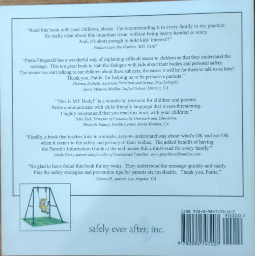 Siblings Katie and her little brother Kyle learn about personal safety, private parts, and “thumbs up & thumbs down” touches by talking with their mom in a loving and easy-to-understand manner. With an empowering dialog that is never fearful, parents can use this book to begin this important discussion with their children. Katie and Kyle’s mom also explains the essential “No Secrets” rule in their family, and that it is never their fault if they get an “uh-oh feeling” from anyone.