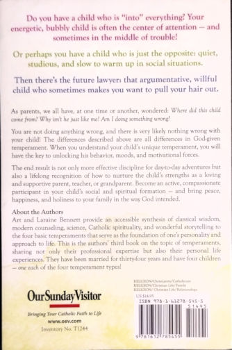 Do you have an energetic, bubbly child who is often the center of attention and sometimes in the middle of trouble! Or perhaps you have a child who is just the opposite: quiet, studious, and slow to warm up in social situations. Then there’s the future lawyer: that argumentative, willful child who sometimes makes you want to pull your hair out. The differences described above are all differences in God-given temperament. When you understand your child’s unique temperament, you will have the key to unlocking his behavior, moods, and motivational forces. The end result is not only more effective discipline for day-to-day adventures but also a lifelong recognition of how to nurture your child’s strengths as a loving and supportive parent, teacher, or grandparent. Become an active, compassionate participant in your child’s social and spiritual formation and bring peace, happiness, and holiness to your family in the way God intended.